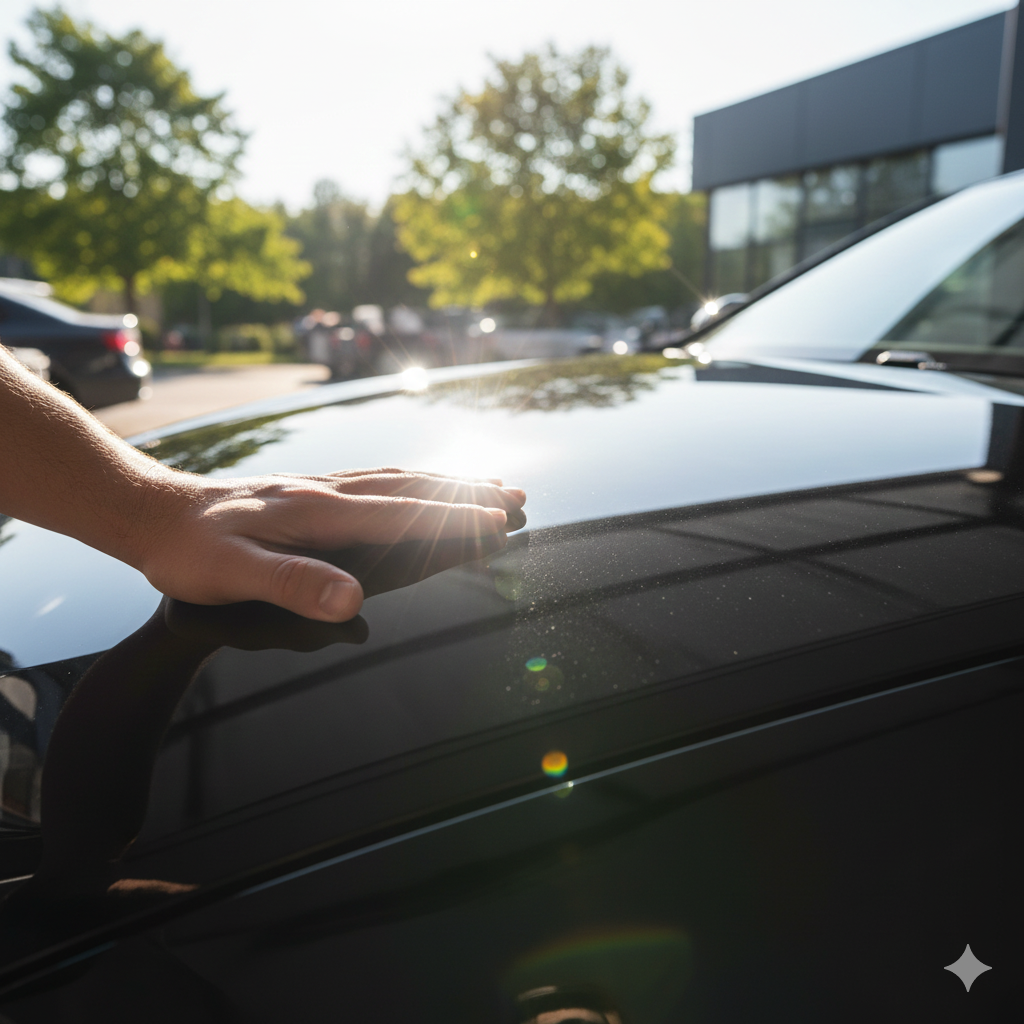 ブラック、ネイビー、ダークグレーといった濃色車のオーナーにとって、拭き上げの省略は「美観の死」を意味します。濃色車は光の反射率が低いため、白いイオンデポジットが視覚的に非常に際立ちます。また、黒色の塗装は太陽熱を吸収しやすく、夏場にはパネル温度が80度近くに達することもあります。これにより、水滴の蒸発速度が淡色車よりも圧倒的に速く、イオンデポジットが「焼き付く」リスクが数倍高いのです。