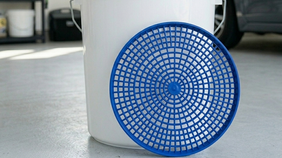 スポンジを濯ぐ際、バケツの底に沈んだ砂粒やゴミが舞い上がってスポンジに再付着するのを物理的に防ぎます。深いバケツに多くの水を入れることで、再付着は減るものの完全には防ぎきれません。そこでこのグリットガードをバケツの底(実際は底面から10センチ程度上にセットする)に入れるだけで、汚れが上まで上がりにくくなると言うわけです。