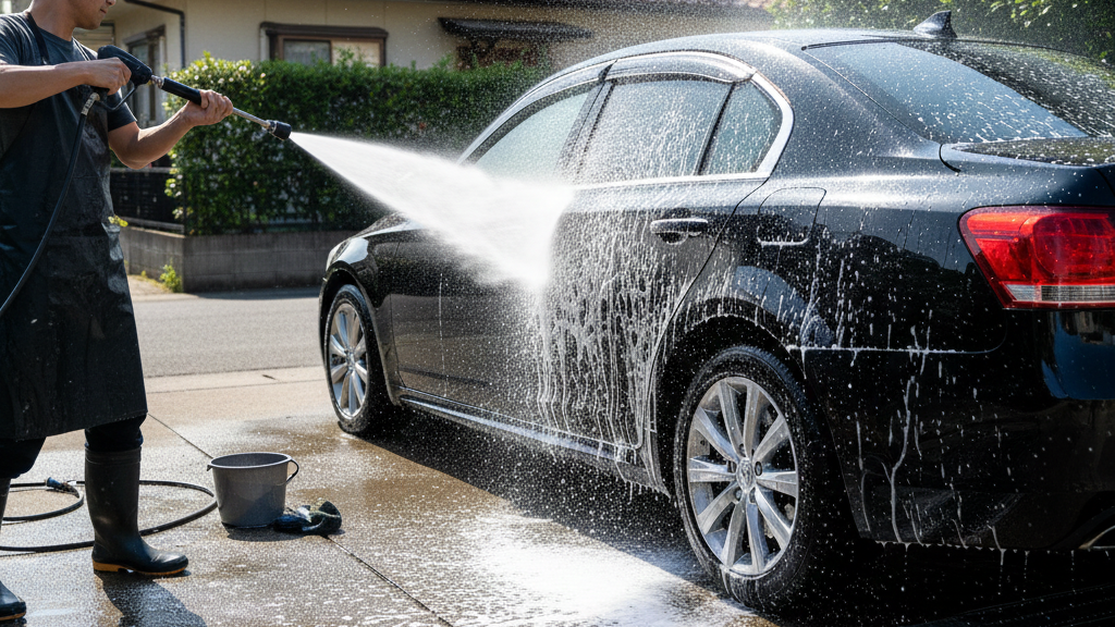 自宅で洗車をする際は、シャワーの勢いを調整し、できるだけ低い位置から水をかけるのが鉄則です。高圧洗浄機を使用する場合は、ノズルの向きに細心の注意を払いましょう。隣家との境界に近い場所では、バケツでの手洗いを中心にするなどの配慮が必要です。