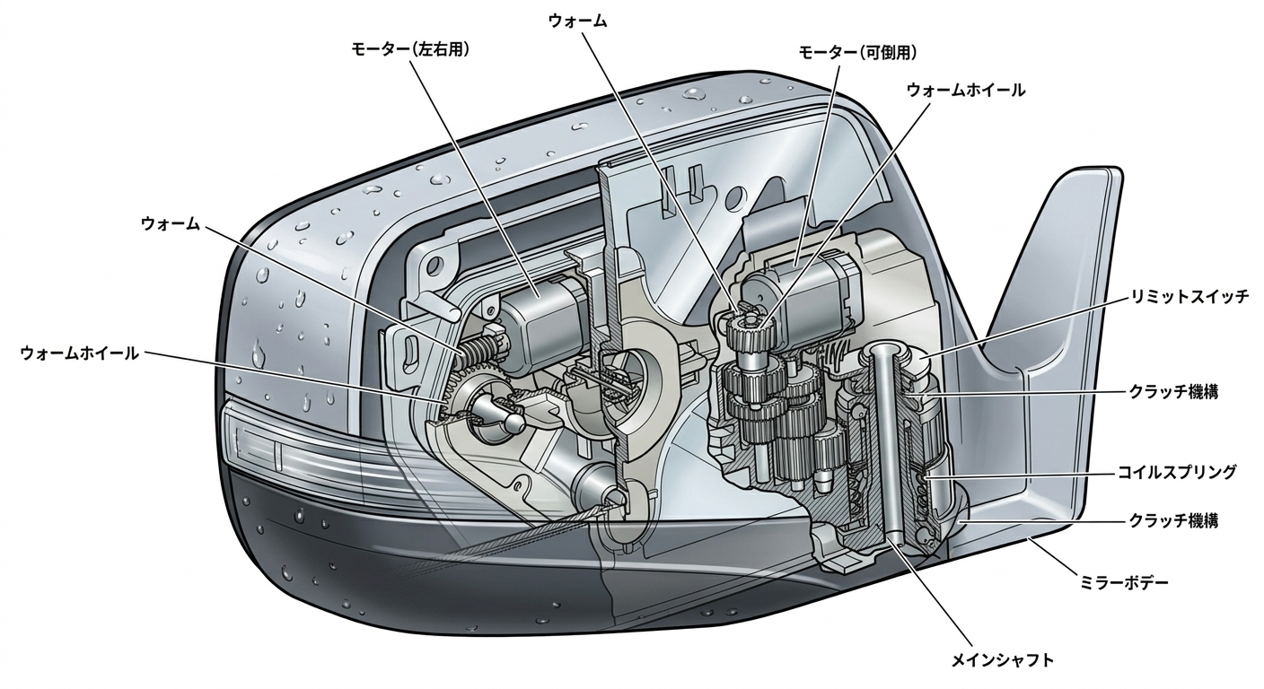特に危険なのが、洗車機が往復する際、往路でミラーを後ろ側に押し込み、復路で逆方向(前方)にミラーを煽るパターンです。多くの電動ミラーは逆方向への強い力には耐えられず、内部のギアや配線が断線する確率が高くなります。